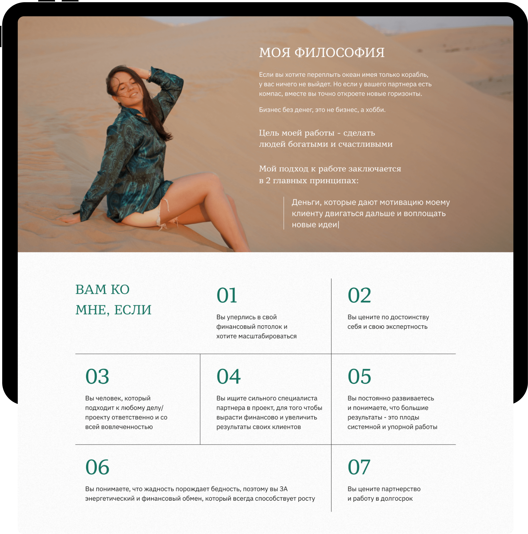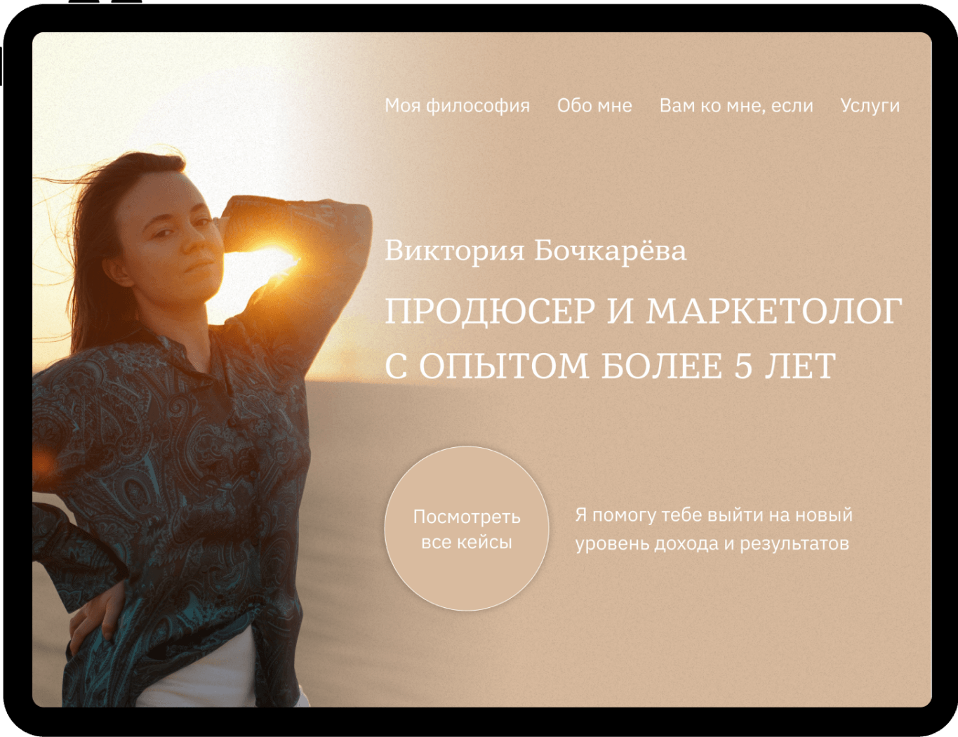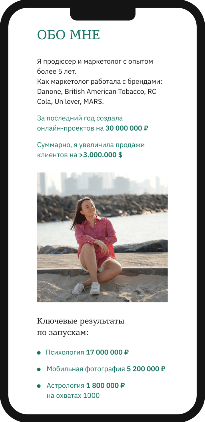 Разработать сайт портфолио, для оказания платных услуг в сфере продюсирования и продаж через эксперта в инстаграм.