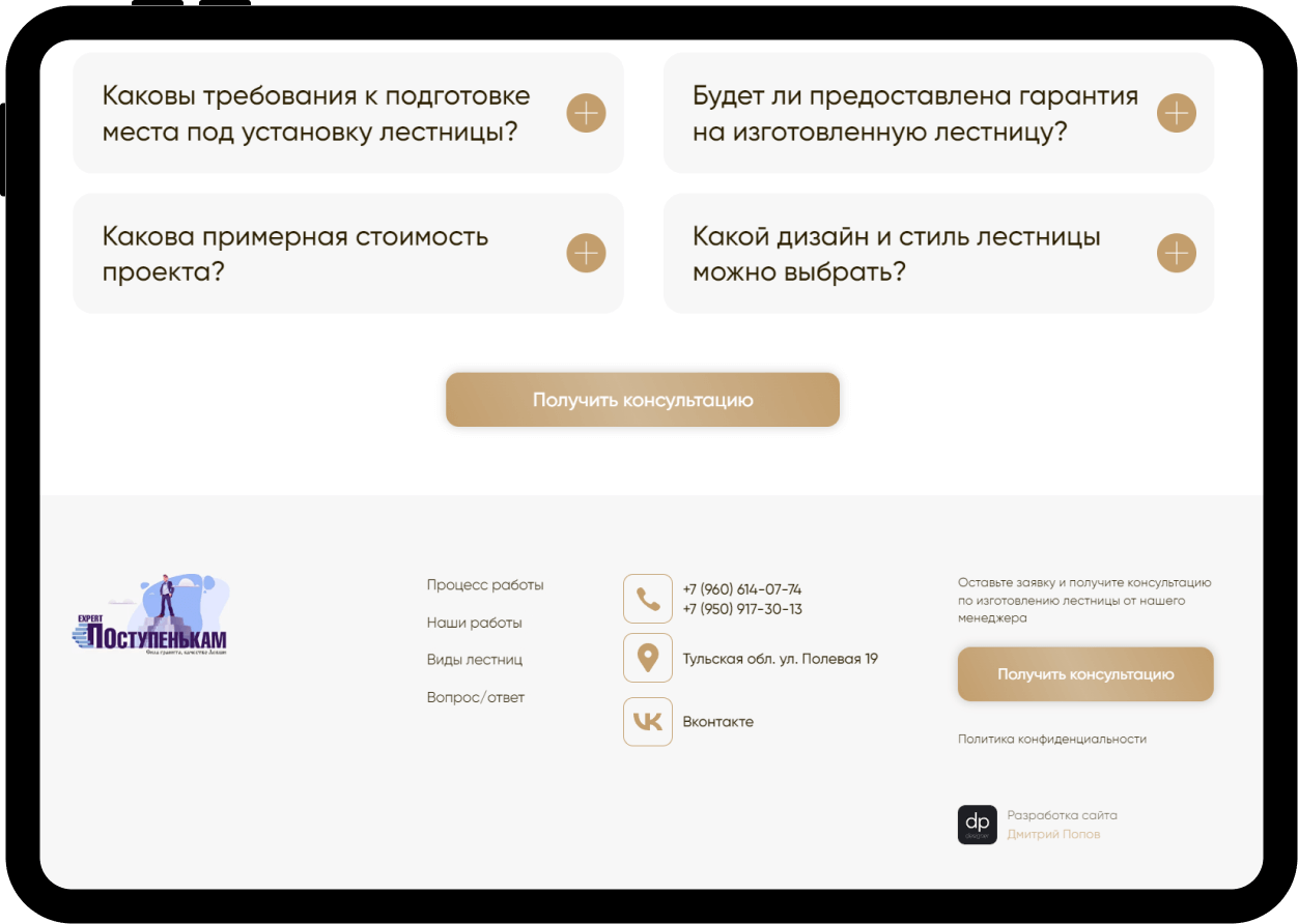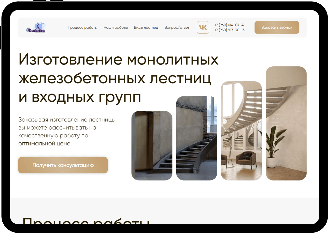 Необходимо реализовать сайт по продажи ЖБК лестниц для частных домов . Было необходимо разработать фирменный стиль.